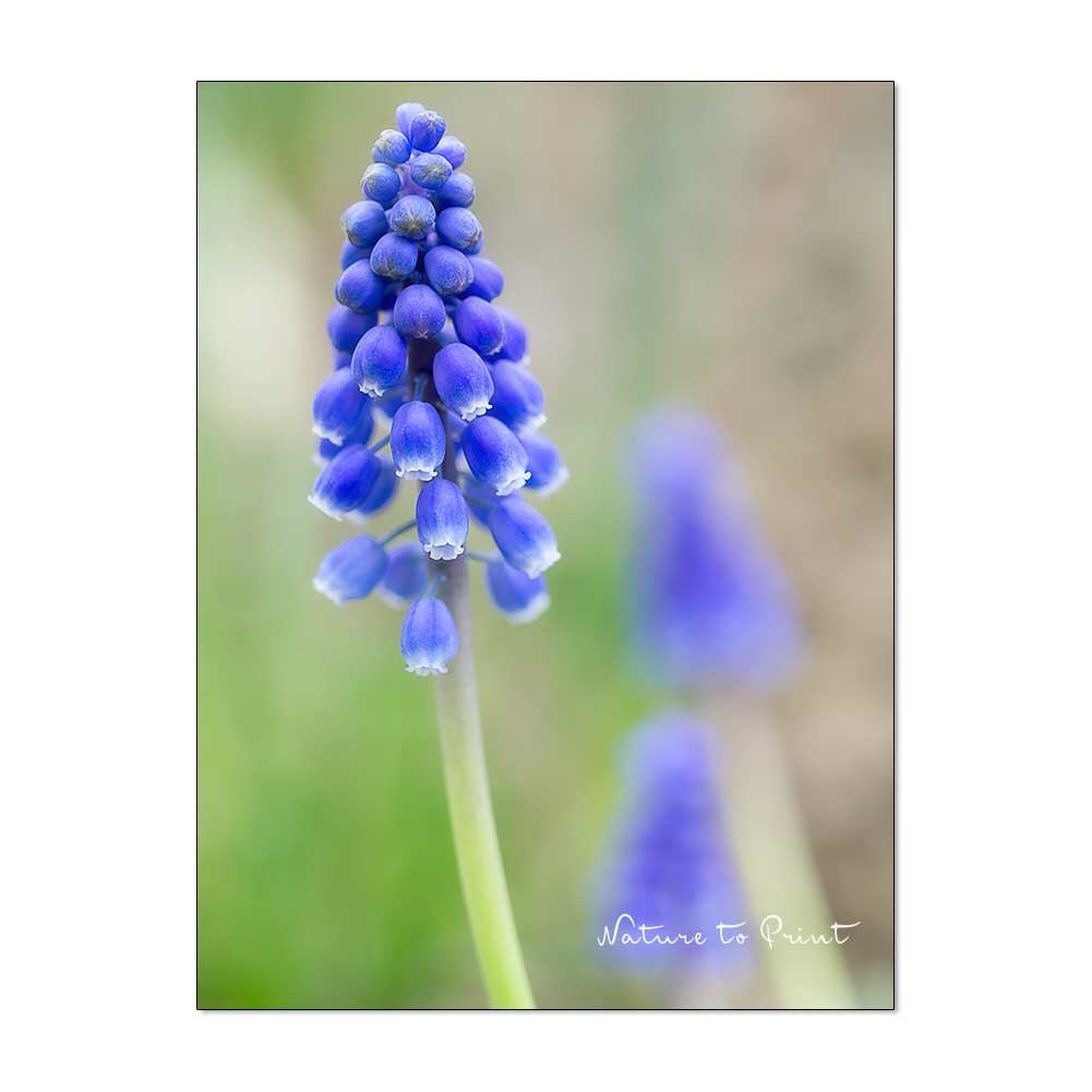 Traubenhyazinthen sind klein, aber oho. In Windeseile verbreiten sie sich überall und von Jahr zu Jahr werden es mehr. Was man Blumenbild "Kleiner Wildfang" nicht unterstellen kann. Es ist ein Stück Natur und ein Blumenbild, das nichts als Freude schenkt - und Hoffnung schürt auf Frühling.