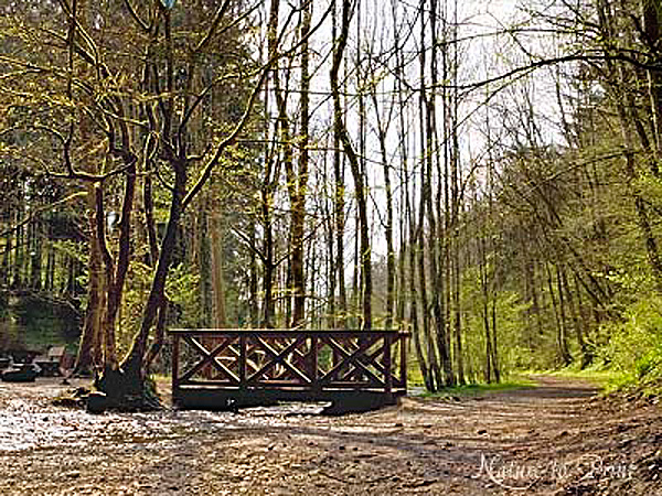 An der Quelle der Lillach schließlich angelangt, führt diese schöne Holzbrücke zu einem Rastplatz mit zwei Holzbänken- und einem Tisch.